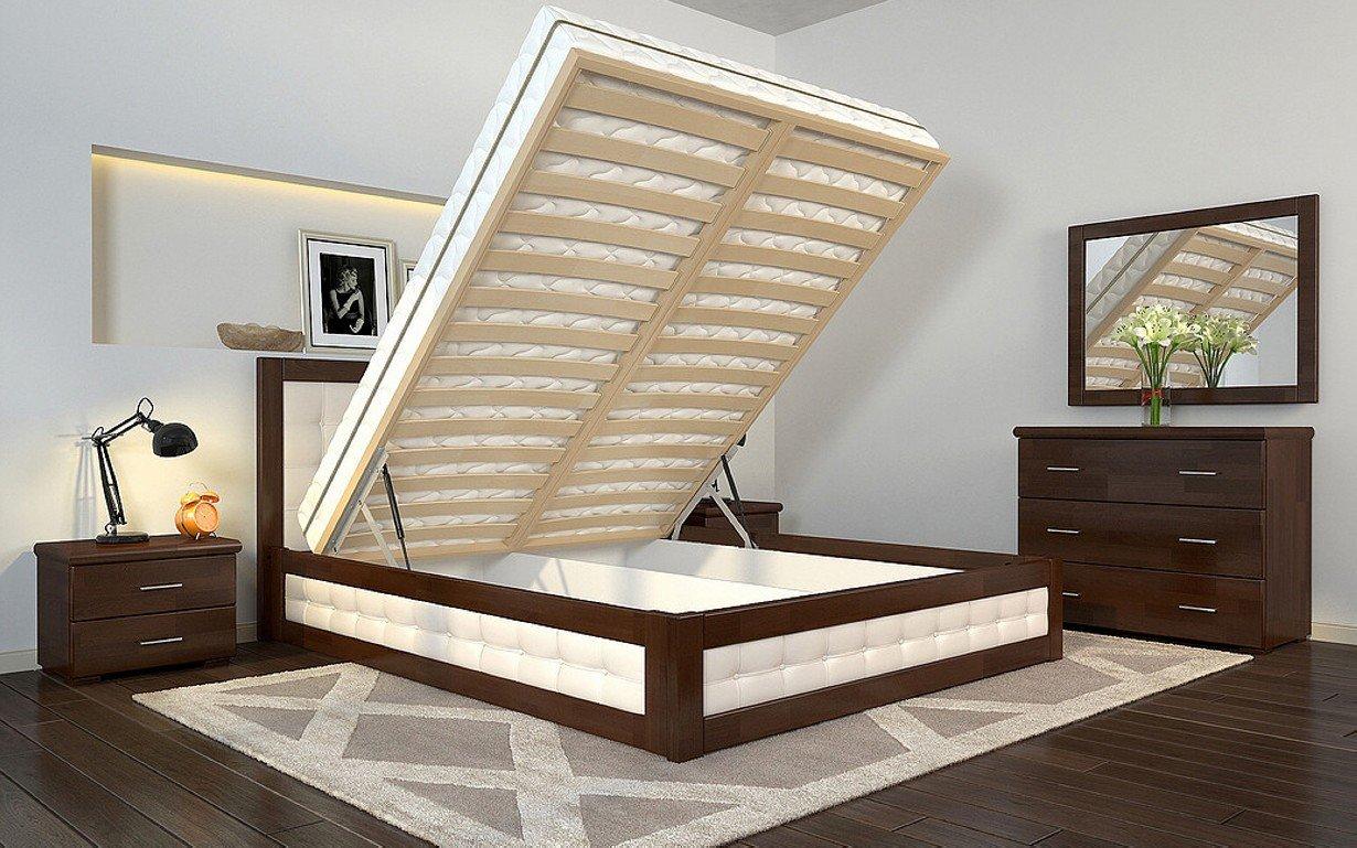 Ультрамодная кровать Рената М с подъёмным механизмом изготовляется из натуральной сосны и бука, на выбор. Натуральное дерево является не только универсальным, но часто и лучшим материалом для изготовления мебельных изделий. Его используют для создания различных элементов мебельной продукции: оснований,  вспомогательных деталей, а также декора. Зависимо от назначения задействуют разные варианты древесины. Сосна используется в целях производства мебели, как экологически чистый материал. Ей присуща средняя плотность и высокая устойчивость ко влаге, что делает её износостойкой. Такую древесину часто применяют, когда требуется изделие с хорошим показателем прочности и надёжности. Как следствие, мебель изготовленная из сосны отличается долголетием. Бук обладает высокой износостойкостью из-за плотности древесины, которая гарантирует долговечность и надёжность кровати. Стойкость ко влаге значительно выше, чем у других материалов, а мелкая однородная текстура придаёт привлекательный внешний вид и помогает выгодно имитировать цвета редких пород деревьев. Из-за присущих буку преимуществ он широко используется в производстве мебели.